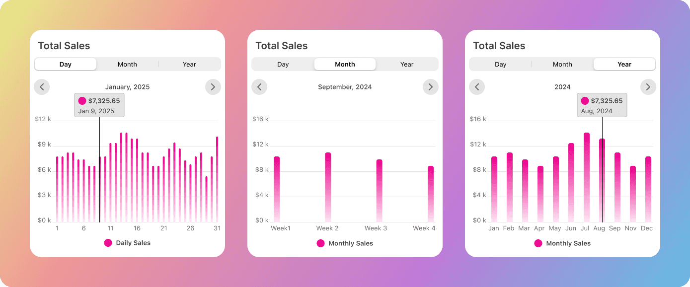 The sales charts show month-over-month and year-over-year data to give retailers a high-level view of their performance. Since locating these figures was a major source of inbound support calls, surfacing sales numbers is projected to save on support costs and improve customer satisfaction.
