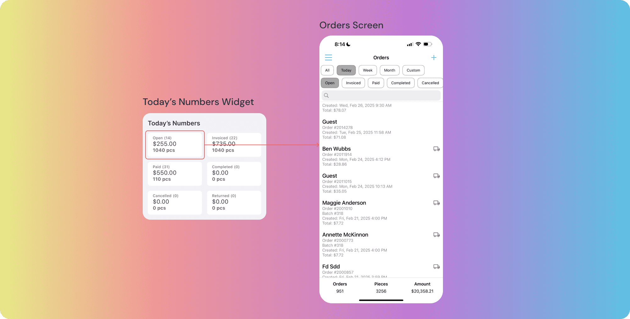 Putting today’s sales front and center will help ease users into the new design. Tapping on the open orders card takes retailers to the orders page where they fulfill and move orders along in their process.